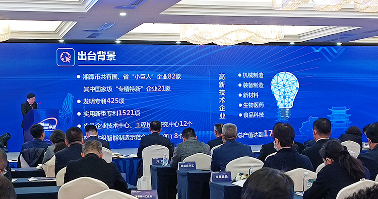 图:湘潭市委常委、市人民政府副市长周晖介绍湘潭市“专精特新”企业“启航”培育计划